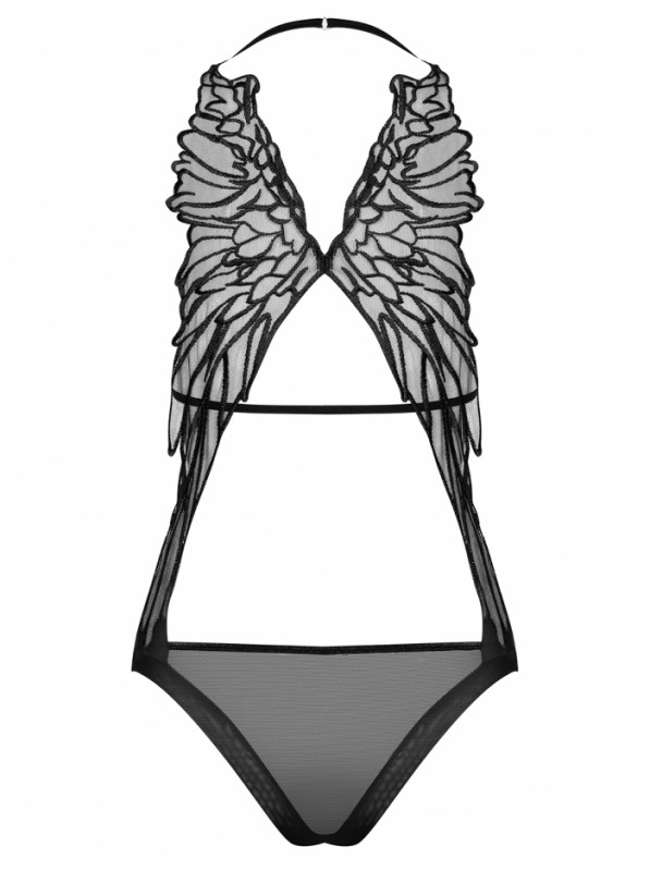 Боди с крыльями "Obsessive Alifini" черное, L/XL
