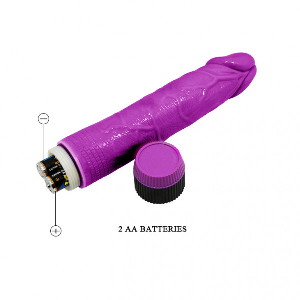 Выполнен вибратор из материала ПВХ в фиолетовом цвете. По тактильным ощущениям максимально имитирует стойкую юношескую эрекцию!