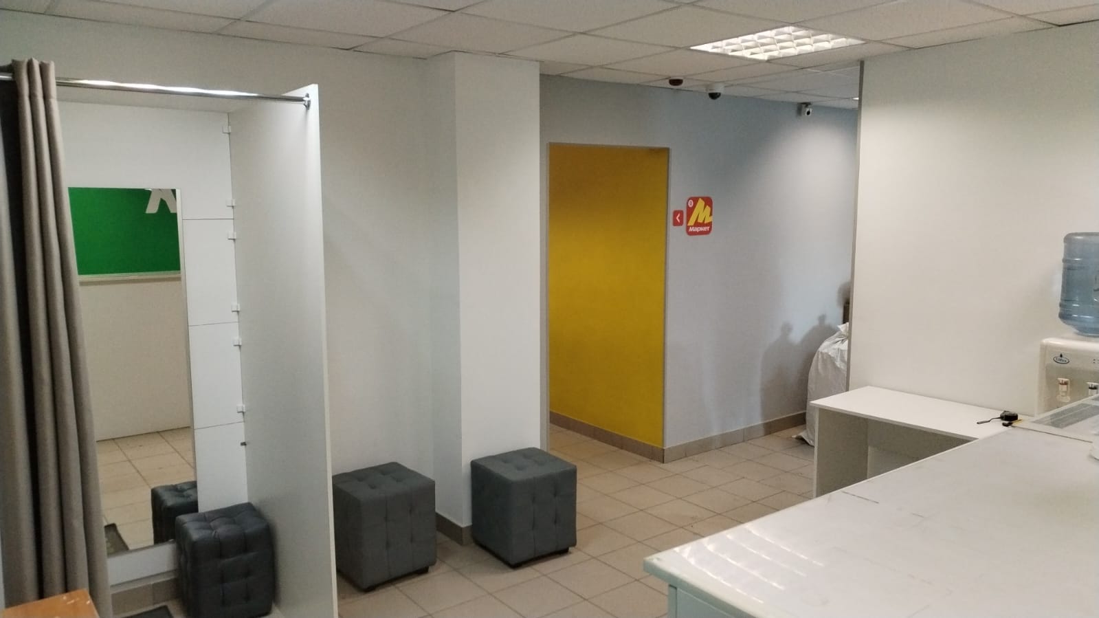 Войти в супермаркет Магнит Косметик через центральный вход, на 1 этаже около входа расположен постамат