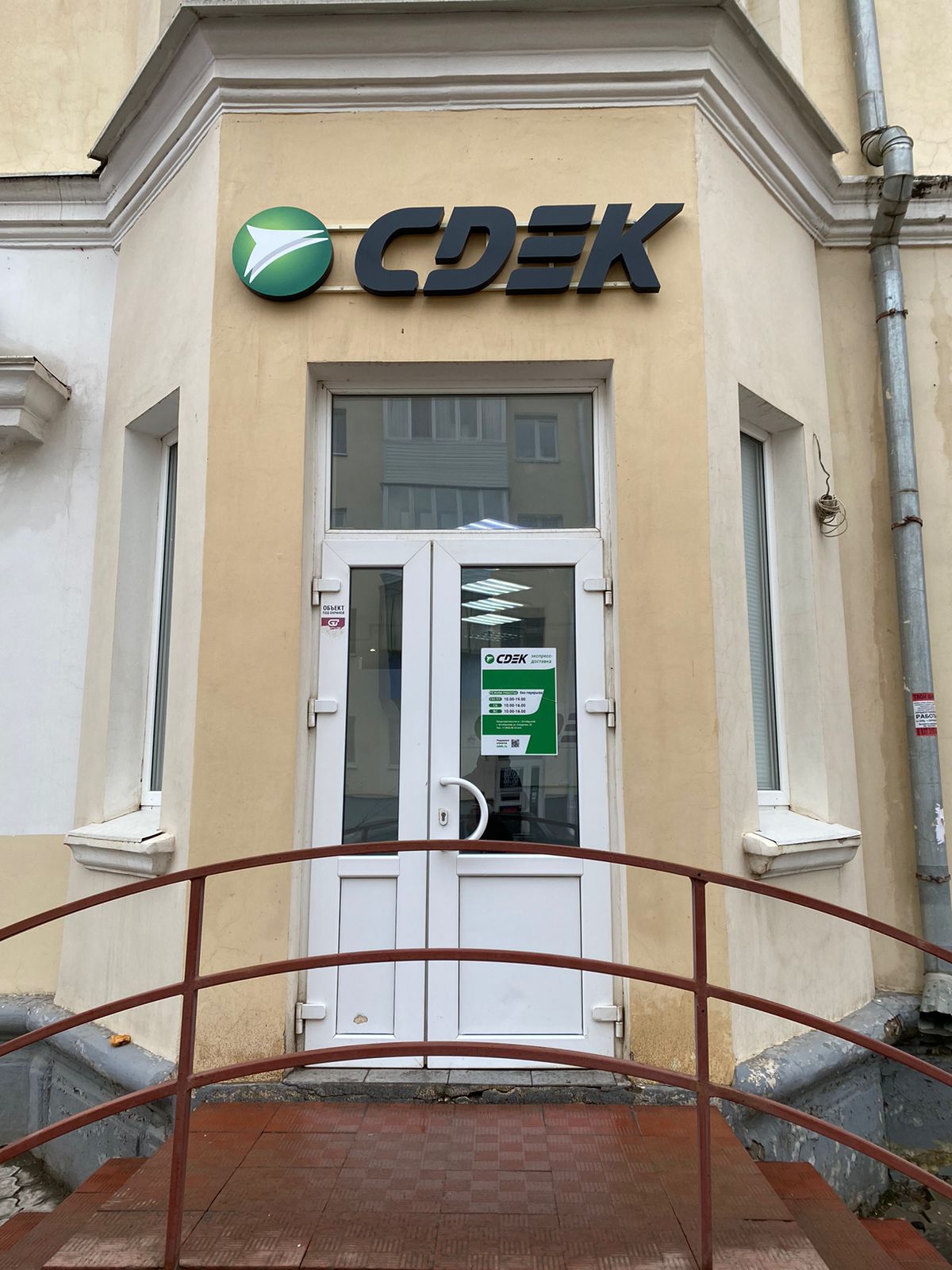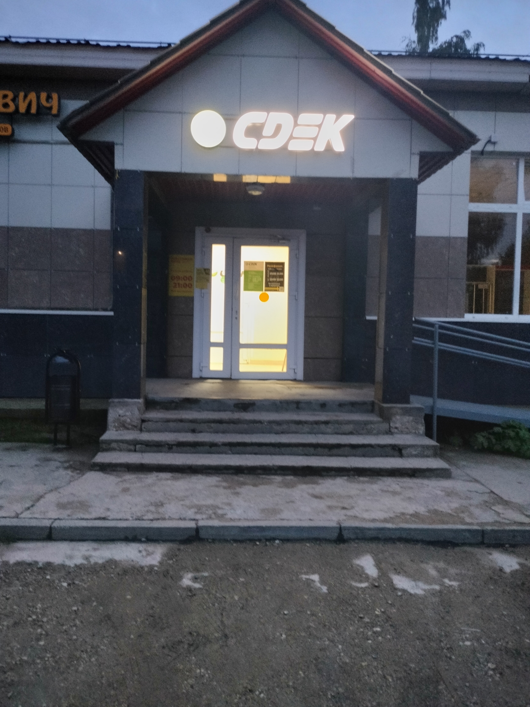 Вход в офис в ТЦ Рико с правого торца здания.