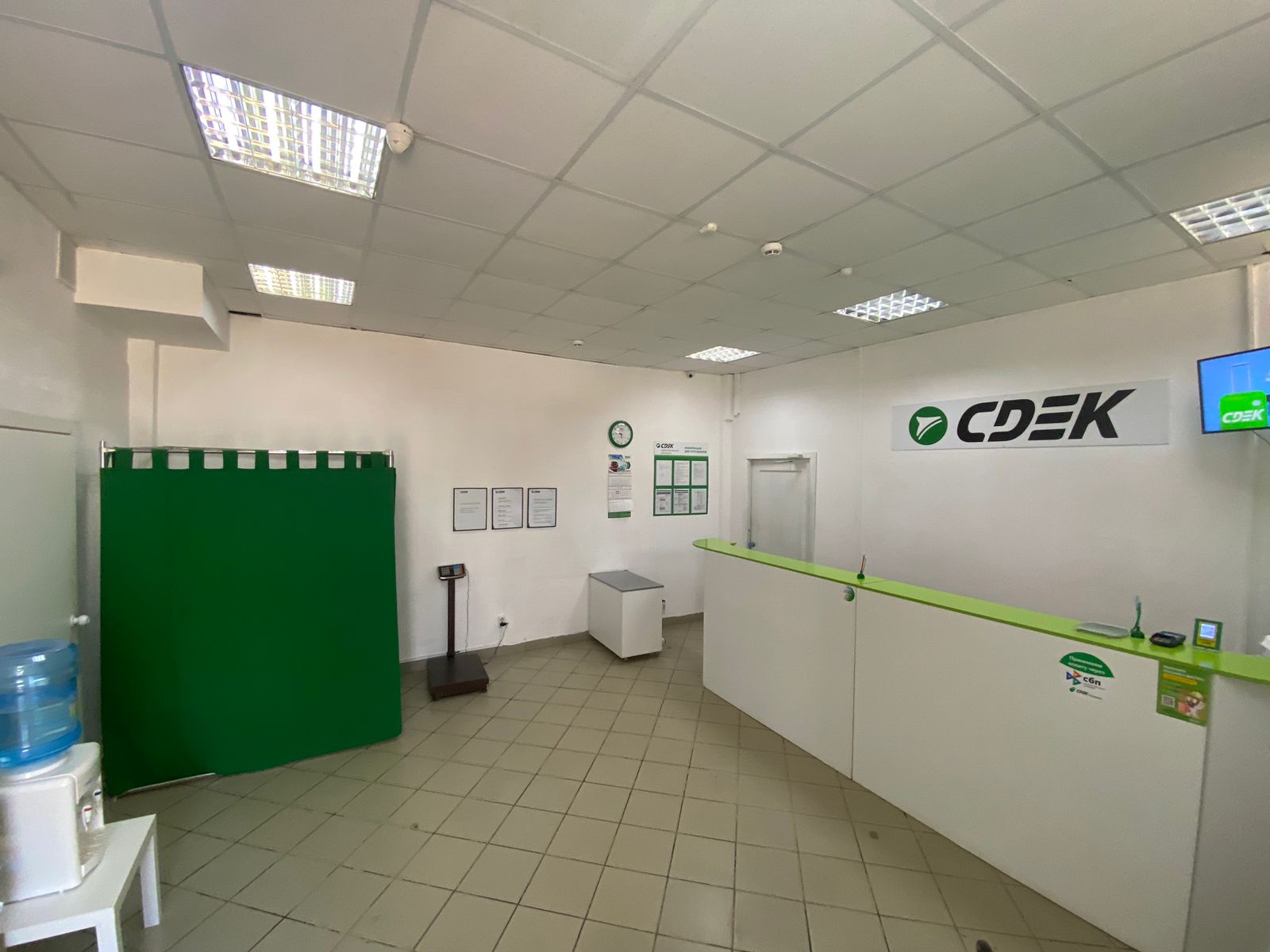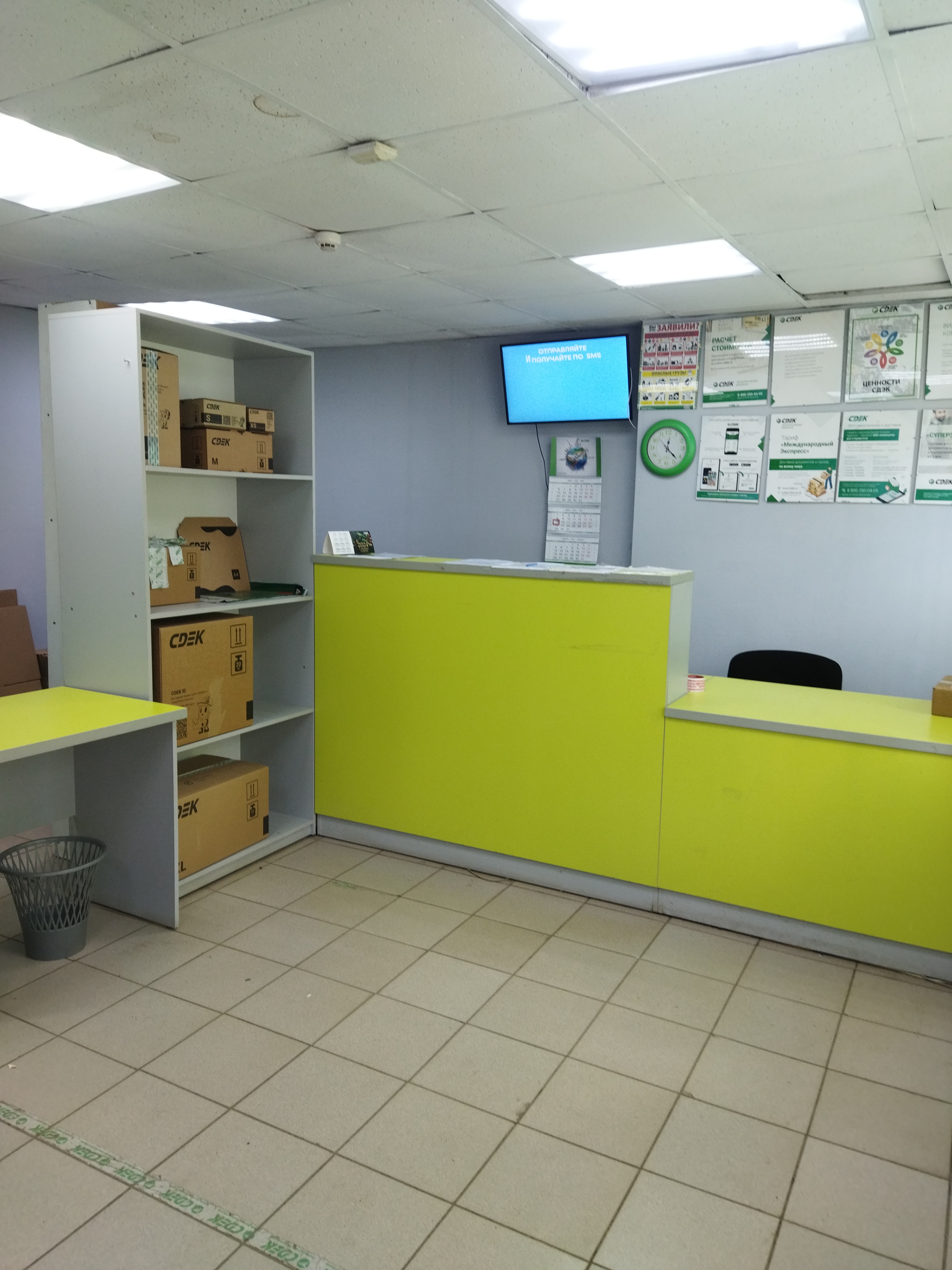 Войти в магазин Находка через центральный вход, на 1 этаже около входа расположен постамат